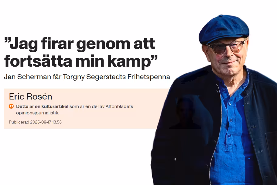 ”2025 års Frihetspenna går till journalisten Jan Scherman, för hans enträgna och betydelsefulla kamp för demokrati och klassiska journalistiska ideal.”