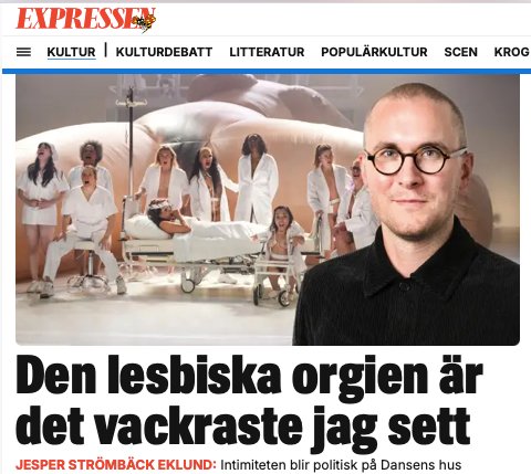 …förklarar på Expressens kultursida att ”Den lesbiska orgien är det vackraste jag sett”.